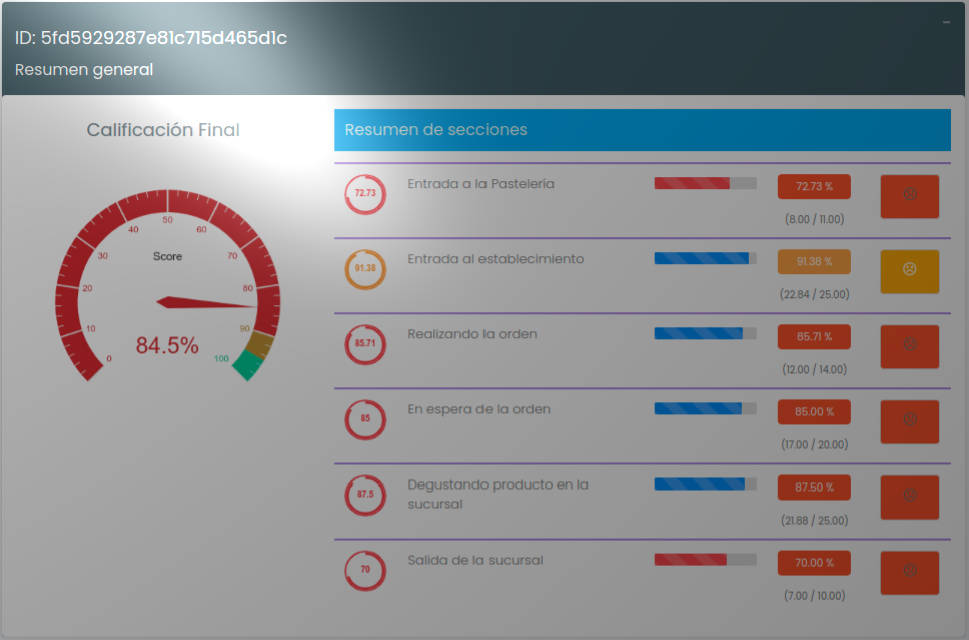Códigos de colores para saber que sucursales, tipos de clientes, áreas de atención o variables están por debajo del nivel esperado.