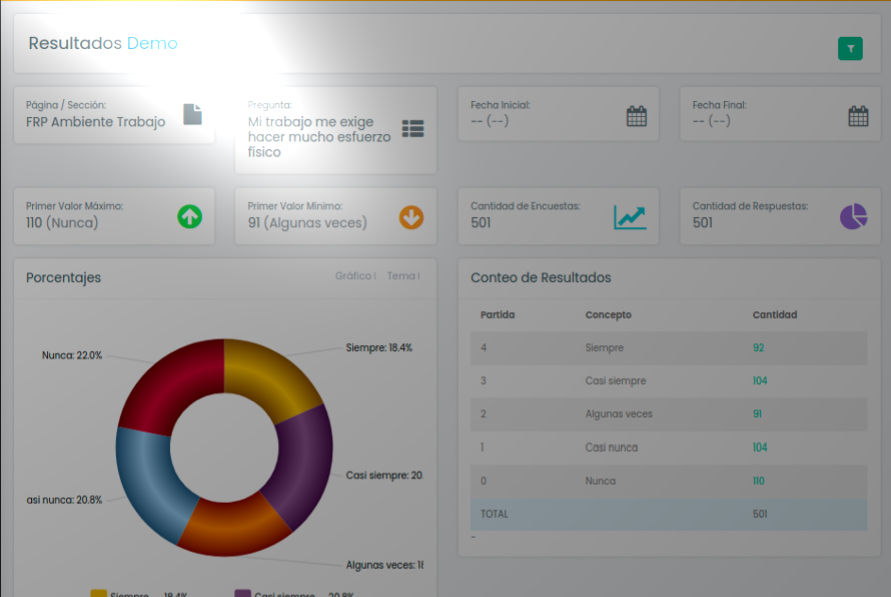 Imprime con un solo clic el resultado de satisfacción, o bien filtra los datos de algunas sucursales o áreas en específico.